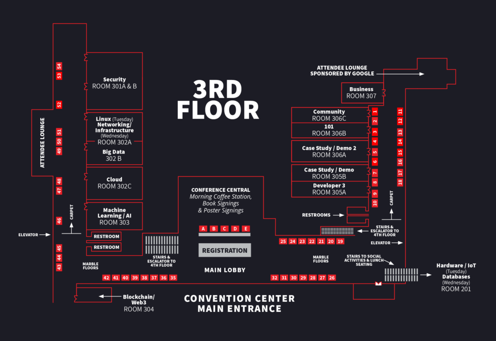 Take a look at the overall floor layout below and begin to familiarize yourself with it if you plan to attend.