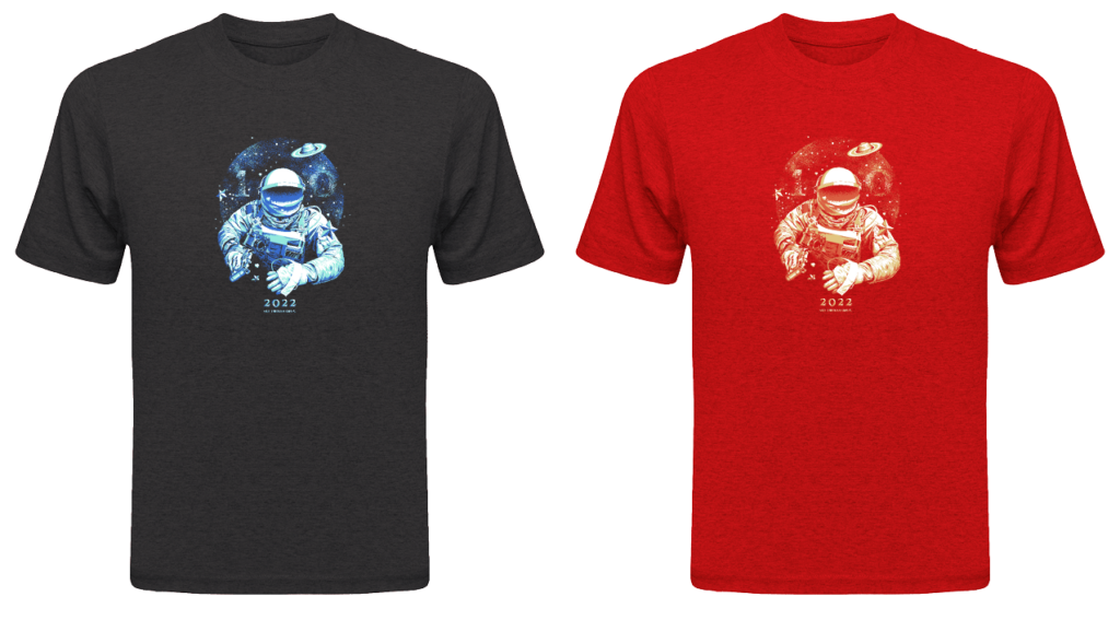 Astro will again be featured, as they’ve been from the very beginning. Shirts will be available in both red and black and in a variety of sizes and cuts.